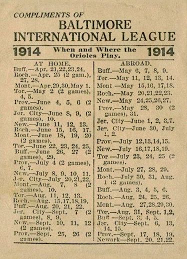 Also, both versions have the same card back and it features the 1914 Team Schedule for the Baltimore Orioles International League.