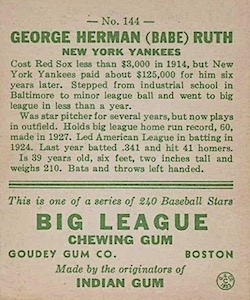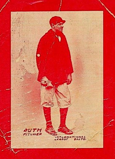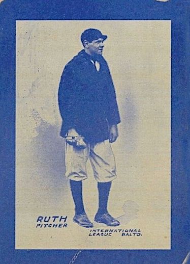 Blue and red copies are known to exist and it features The Bambino as a minor leaguer, we know this because just under his feet is the statement International League.