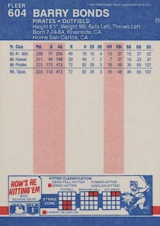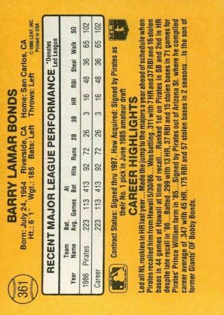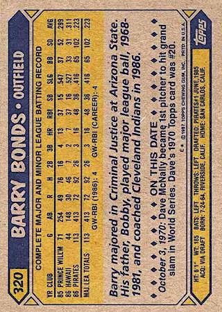 The controversy begins with card manufacturers missing the boat. Barry debuted in the MLB on May 30, 1986, he went on to play in 113 games that season with 16 home runs and 36 stolen bases, respectively. But no one included rookie cards of Barry in their base sets!
