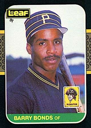 ’87 Donruss, this black-bordered beauty has a really distinct card design that reminds me of a bumblebee. Chronic chipping along the edges and off-centering plague this set. The photo shows a very young Bonds with what appears to be a caterpillar on his upper lip. There are no parallels for this set.