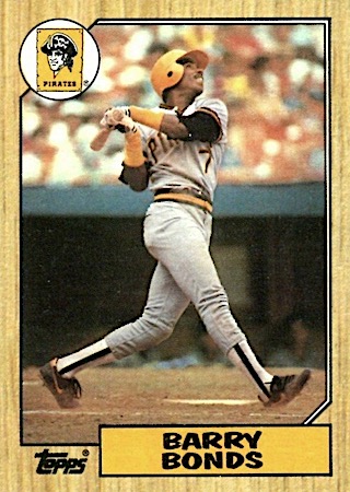 1987 was the early stages of the junk wax era but many collectors have considered this one to be one of the better sets of this era. Big, bold, gradient color, borders surround the photo of Mr. Bonds. Another good portrait photo here with dual team logos, one on Bonds jersey the second team logo on card design slightly below it.