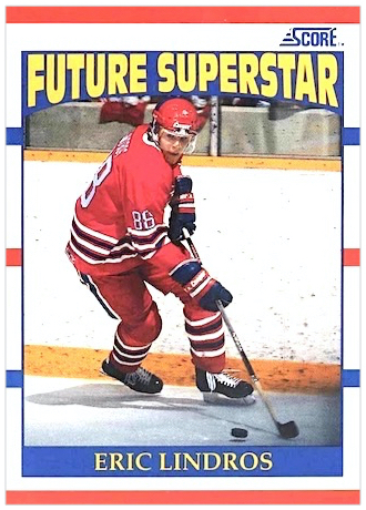 With their 1st Pick in the 1st Round of the 1991 NHL Entry, the Quebec Nordiques selected Eric Lindros from the Oshawa Generals. Eric Lindros has two true rookie cards and four controversial rookie-year cards.