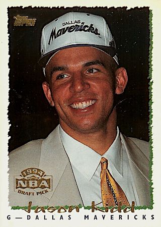 With the second overall pick of the 1st Round in the 1994 NBA Draft, the Dallas Mavericks select Jason Kidd from the University of California. Jason Kidd has 15 true rookie cards and 10 parallels.