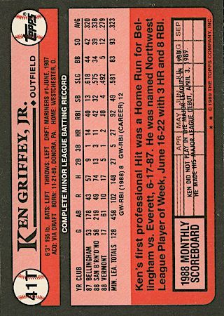 You see the misconception with Ken Griffey Jr is all cards between 1987-1990 are all rookie cards. Friends, they are not. The reason this assumption is made is because of one of three reasons: 1) we are either ignorant, 2) uncertain, or 3) we have a blatant disregard for what is and is not a true RC typically due to personal agendas.