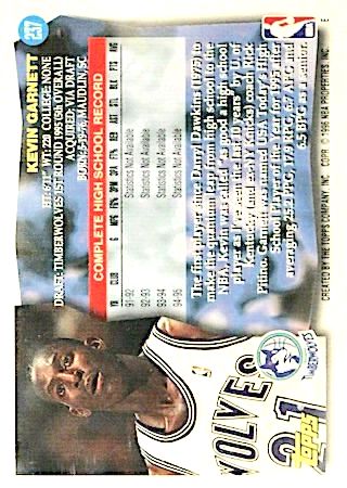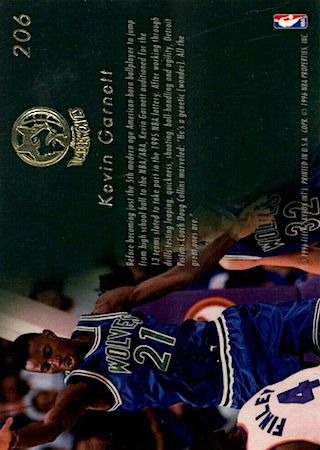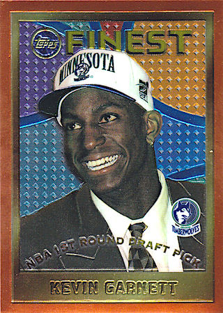 The Topps Finest is considered the key rookie card of Kevin Garnett. It is the most desired rookie card by most collectors. The reasons? Well, card quality for starters. Also, the card design.
