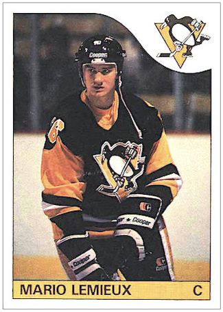 NOTE: The Topps brand also offers this box bottom variant of Mario Lemieux, and they sell for a third of what the O-Pee-Chee version sells for.