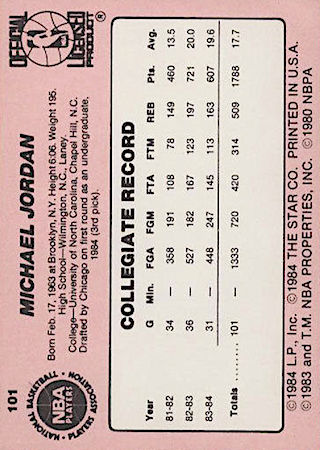 With the 3rd pick of the 1st Round of the 1984 NBA Draft, the Chicago Bulls selected Michael Jordan from the University of North Carolina. Michael Jordan has one XRC card, one true rookie card, and one rookie year sticker card.