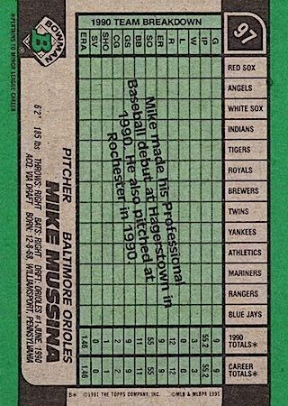 When shopping for these rookie cards of Mike Mussina perhaps you’ll notice the low monetary value. This is largely in part to the era these cards were printed.