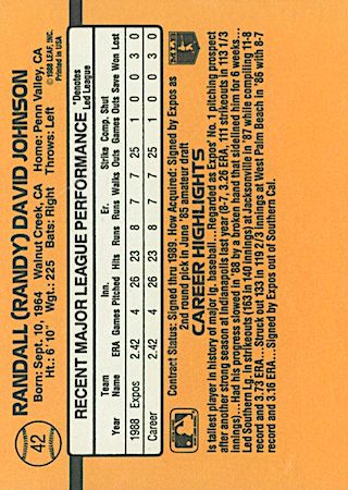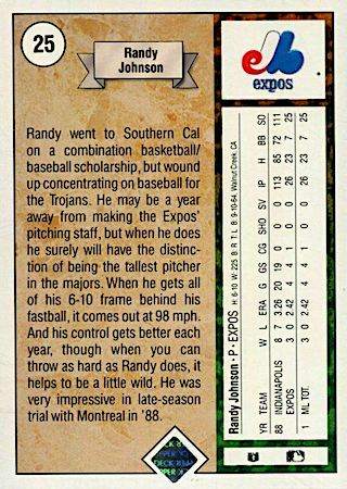 With their pick in the 2nd Round of the 1985 MLB June Amateur Draft, the Montreal Expos selected Randy Johnson from the University of Southern California. The Big Unit has 7 true rookie cards along with 2 parallels and another 7 cards that are oftentimes viewed as rookie cards but are not!