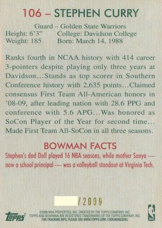 With the 7th Pick in the 1st Round of the 2009 NBA Draft, the Golden State Warriors selected Stephen Curry from Davidson University. According to my research, Steph Curry’s rookie cards have gone to a whole new level which begs the question how many true rookie cards does Steph Curry actually have?